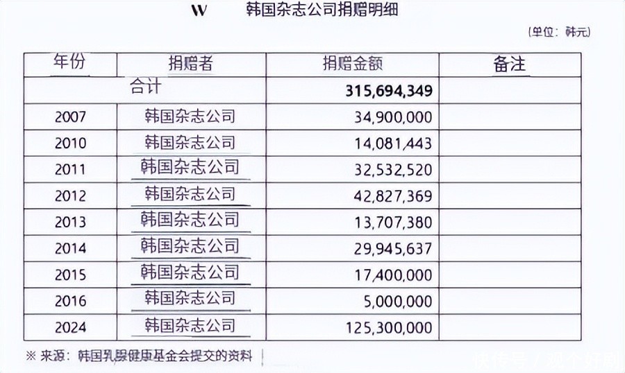而且2006年到2024年的累计捐款其实是9.6亿韩元,不是3亿多。